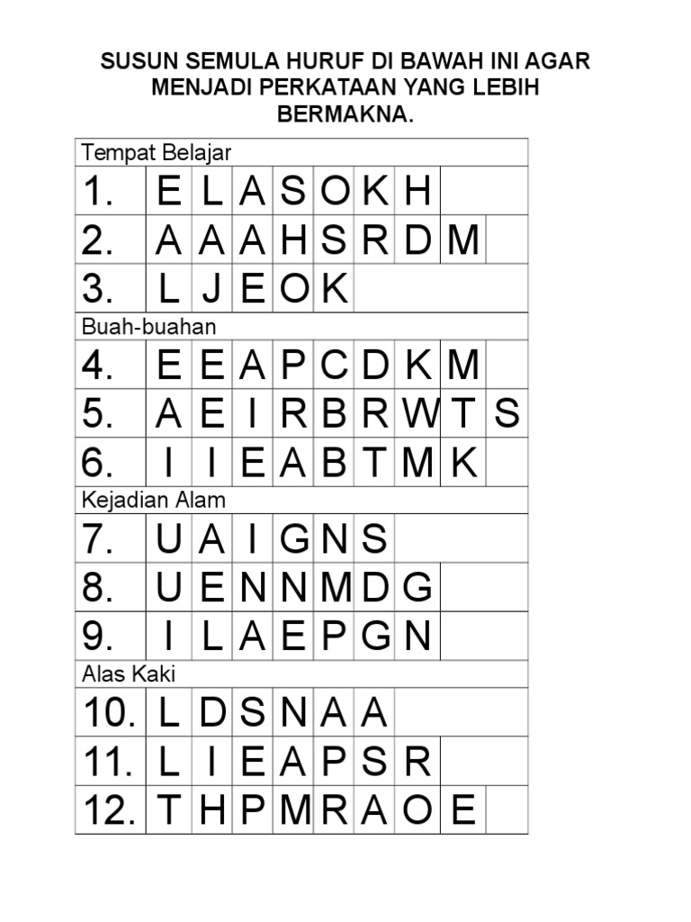 Susun Semula Huruf Di Bawah Ini Agar Menjadi Perkataan Yang Lebih Bermakna Pdf